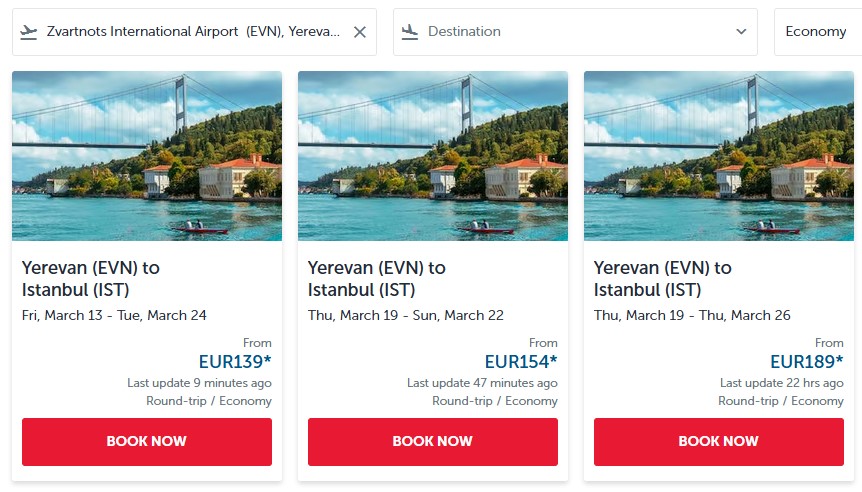 «Turkish Airlines»-ը հրապարակել է Երևան-Ստամբուլ տոմսերի արժեքները