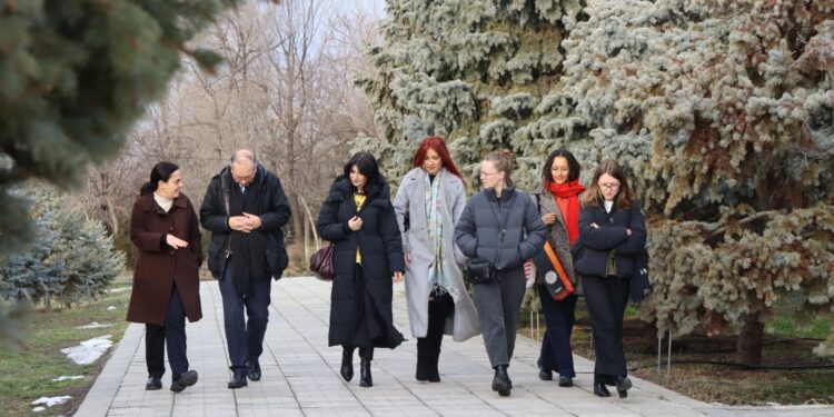 Հյուրերին դիմավորել է Հայոց ցեղասպանության թանգարան-ինստիտուտի տնօրեն Էդիտա Գզոյանը և ուղեկցել դեպի Հայոց ցեղասպանության հուշահամալիր՝ ներկայացնելով հուշահամալիրի ստեղծման պատմությունը: ՀՑԹԻ տնօրենն անդրադարձ է կատարել նաև Ծիծեռնակաբերդի տարածքում անցյալ դարավերջին Ադրբեջանի Սումգայիթ, Կիրովաբադ (Գանձակ), Բաքու քաղաքներում ադրբեջանական կառավարության կազմակերպած կոտորածներին զոհ գնացած հայերի հիշատակին տեղադրված երեք խաչքարերի և Արցախյան գոյամարտի տարիներին Հուշապատի դիմացի հատվածում հուղարկավորված հինգ ազատամարտիկների պատմություններին՝ շեշտելով կապը տեղի ունեցածի և Հայոց ցեղասպանության միջև: