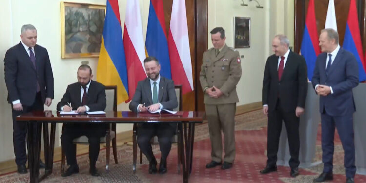 Այն ստորագրեցին ԱԳ նախարար Արարատ Միրզոյանը և Լեհաստանի Հանրապետության ազգային պաշտպանության նախարար Վլադիսլավ Կոսինյակ-Կամիշը: