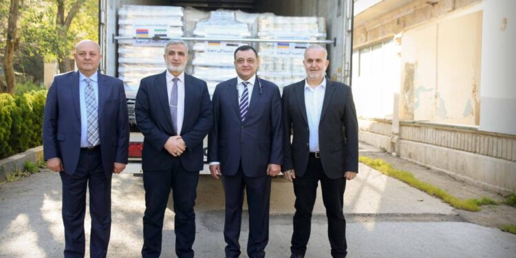 Սիրիայում ՀՀ արտակարգ և լիազոր դեսպան Ռուբեն Խարազյանը Հալեպի Արդյունաբերական և գյուղատնտեսական արտադրանքի համալիրում Հալեպի փոխնահանգապետ Ֆաուազ Հիլալին պաշտոնապես հանձնել է ՀՀ-ից ուղարկված մարդասիրական օգնությունը։ Այս մասին հայտնել է Հալեպում գործող հայկական «Գանձասար» շաբաթաթերթը։