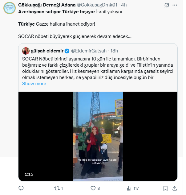 30 Mayıs cuma günü İsrail ordusunu Azerbaycan petrolüyle besleyen Socar'ın İstanbul'daki Genel Müdürlüğü önünden seslendik: Soykırımcıları besleyen, Filistin topraklarını yağmalama… pic.twitter.com/kjEdMn4dwj