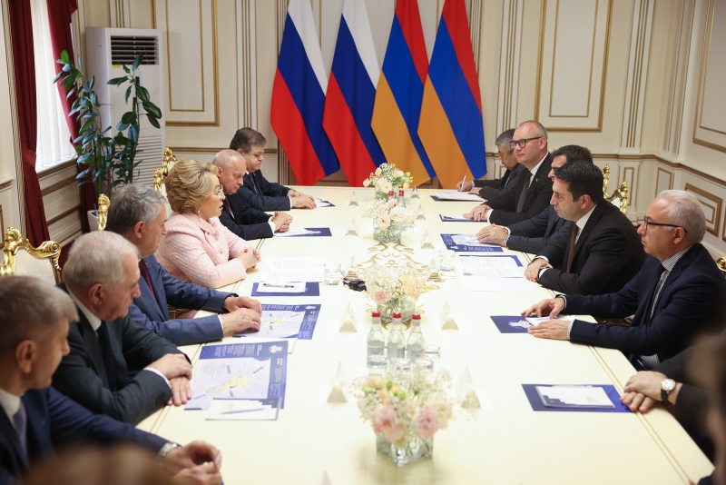 Ալեն Սիմոնյանը շնորհակալություն է հայտնել Վալենտինա Մատվիենկոյին Հայաստան կատարած այցի համար` նշելով, որ նման փոխադարձ այցերը կարեւոր են երկկողմ հարաբերությունների զարգացման տեսանկյունից՝ մասնավորապես ընդգծելով այն հանգամանքը, որ այցը տեղի է ունենում Հայրենական մեծ պատերազմի հաղթանակի հոբելյանական 80-ամյակի համատեքստում: