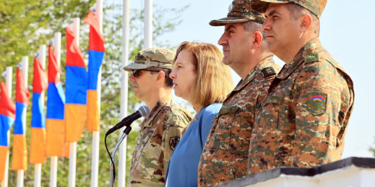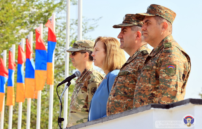 Զորավարժությանը ներգրավված զինծառայողներին ողջունել են ԶՈՒ ԳՇ պետ, գեներալ-լեյտենանտ Էդվարդ Ասրյանն ու ՀՀ-ում ԱՄՆ արտակարգ և լիազոր դեսպան Քրիստինա Քվինը։