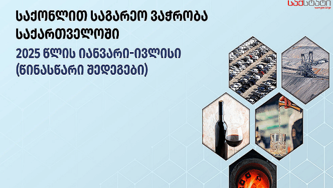 Տարեսկզբից Վրաստանից Ռուսաստանի Դաշնություն է արտահանվել 84,5 հազար տոննա հանքային և քաղցրահամ ջուր, 37,3 հազար տոննա շաքար պարունակող հանքային և գազավորված ջրեր, 32,7 հազար տոննա բնական խաղողի գինի, 20,1 հազար տոննա ալկոհոլային խմիչքներ և 6 հազար տոննա պտուղ: