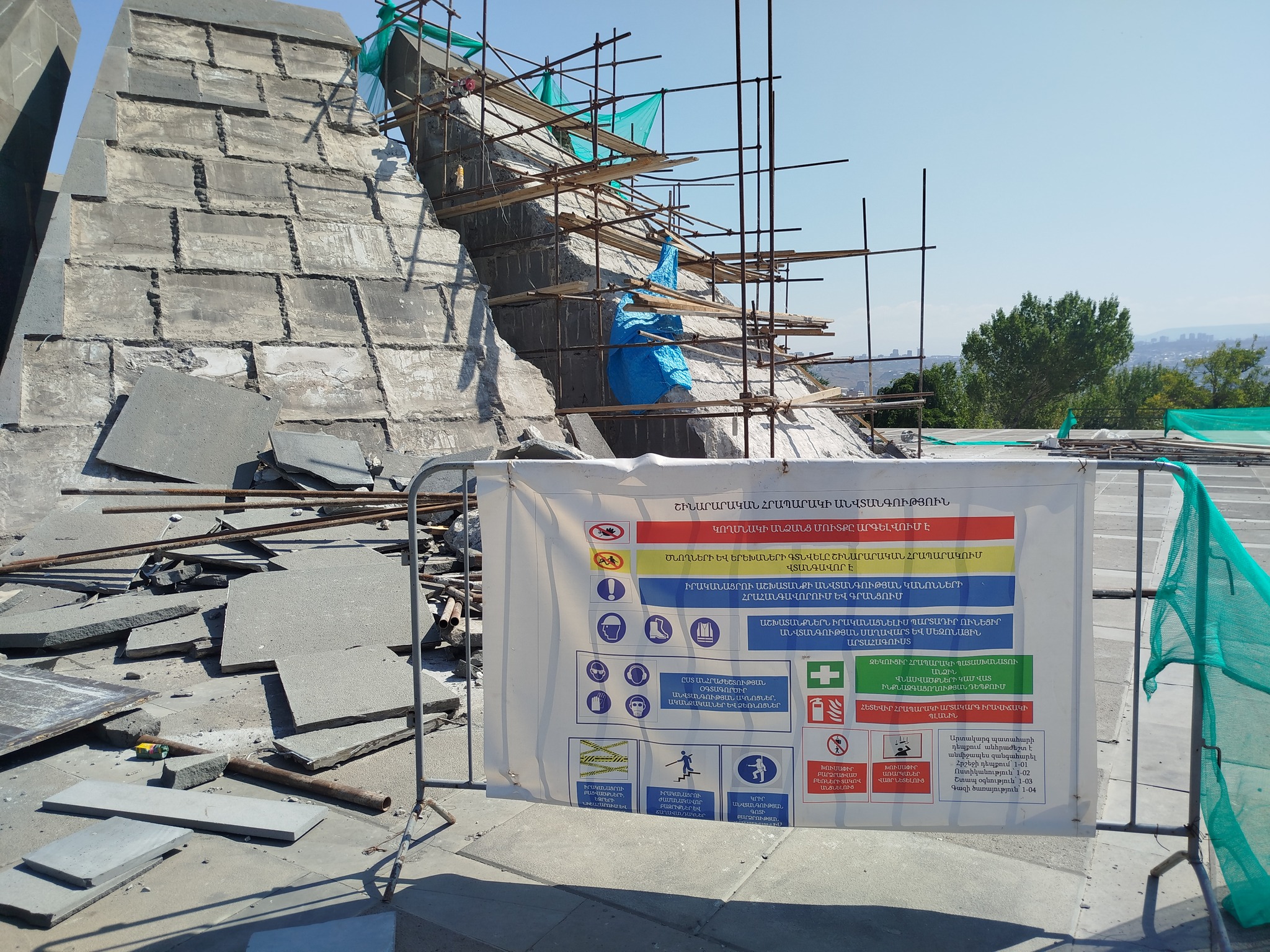 Շուրջ երկու ամիս է մեկնարկել է Հայոց ցեղասպանության թանգարան-ինստիտուտի հիմնանորոգման աշխատանքների երկրորդ փուլը՝ Հավերժության տաճարի թեք մույթերի և վարչական մասնաշենքի տանիքի նորոգումը: Հայոց ցեղասպանության հուշահամալիրի հիմնանորոգման ընթացքում և՛ թանգարանը, և՛ հուշահամալիրը բաց են լինելու այցելուների և պաշտոնական պատվիրակությունների համար: Այդ նպատակով մույթերը հերթով են հիմնանորոգվում, այժմ ընթանում են առաջին երկու մույթերի վերականգնման աշխատանքները: