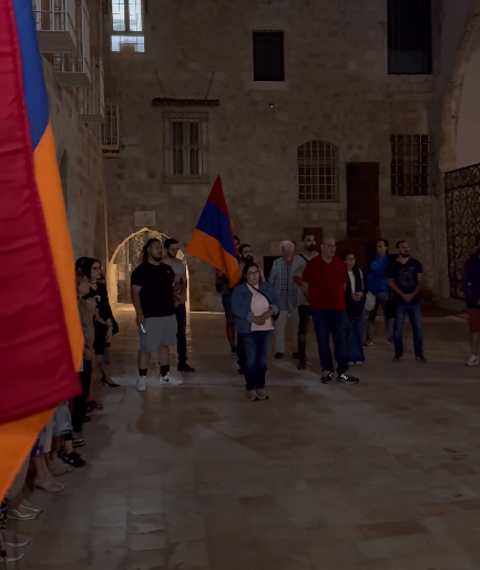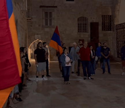 Երուսաղեմի հայ համայնքը օգոստոսի 27-ի երեկոյան հավաքվել էր Սուրբ Հակոբյանց վանքի բակում՝ Երուսաղեմի հայոց պատրիարքարանի մուտքի առջև՝ բողոքելով «Կովերի պարտեզի» շուրջ նոր գործարքի դեմ: