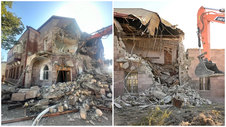 Ստեփանակերտում հողին է հավասարեցվում Արցախի ԱԳՆ-ի շենքը (լուսանկարներ)