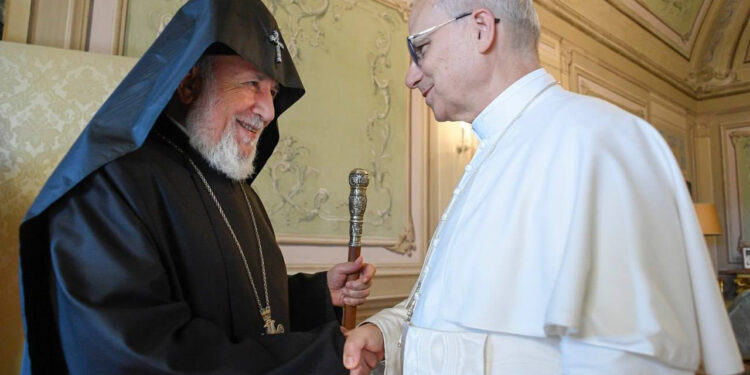 Վեհափառ Հայրապետը գոհունակությամբ նշել է, որ երկու եկեղեցիների միջև եղբայրական կապերն ամրապնդվել են շնորհառատ հանդիպումների և հավատքի համատեղ վկայությունների միջոցով՝ հիշելով երջանկահիշատակ Սուրբ Հովհաննես Պողոս Երկրորդ Պապի այցելությունը Հայաստան 2001 թվականին, ապա 2016 թվականին երջանկահիշատակ Ֆրանցիսկոս Պապին Սուրբ Էջմիածնում հյուրընկալելու բարեպատեհ առիթը «այց առաջին քրիստոնյա երկիր» խորագրով ուխտագնացության կապակցությամբ: Հայոց Եկեղեցու և Հռոմի Կաթոլիկ Եկեղեցու փոխհարաբերությունների հիշարժան հանգրվաններից Նորին Սրբությունը նկատեց 2015 թվականին Հայոց ցեղասպանության հարյուրերորդ տարելիցի կապակցությամբ Սուրբ Պետրոսի տաճարում մատուցված սրբազան Պատարագը և Հայոց Եկեղեցու մեծագույն սրբերից Գրիգոր Նարեկացու հռչակումը որպես Տիեզերական Եկեղեցու վարդապետ։