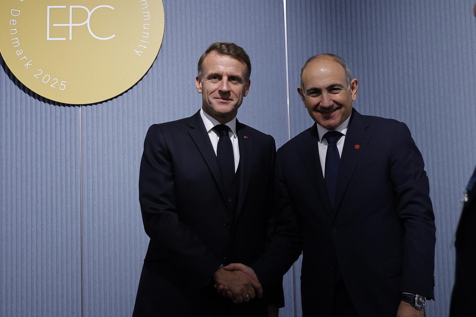 Կոպենհագենում՝ Եվրոպական քաղաքական համայնքի 7-րդ գագաթնաժողովի շրջանակներում, տեղի է ունեցել Հայաստանի վարչապետ Նիկոլ Փաշինյանի հանդիպումը Ֆրանսիայի նախագահ Էմանուել Մակրոնի հետ։ Այդ մասին հայտնում է ՀՀ վարչապետի աշխատակազմը։ Հանդիպման ընթացքում Փաշինյանը և Մակրոնը քննարկել են Հայաստան-Ֆրանսիա բազմոլորտ համագործակցության ընթացքն ու զարգացման հեռանկարները։ Կողմերը վերահաստատել են Հայաստանի և Ֆրանսիայի միջև ձևավորված առանձնաշնորհյալ հարաբերությունների բարձր մակարդակը և ընդգծել համատեղ նոր նախաձեռնությունների իրականացման կարևորությունը։