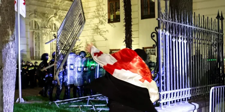 Հաղորդվում է, որ հանրահավաքի կազմակերպիչներից մեկի՝ «Միացյալ ազգային շարժման» քաղաքական խորհրդի նախագահ, նախկին գլխավոր դատախազ Մուրթազ Զոդելավայի կոչով մի խումբ ցուցարարներ, հիմնականում տղամարդիկ, շարժվել են դեպի Վրաստանի նախագահի նստավայր։ Մի քանի տասնյակ բողոքողներ կոտրել են ցանկապատը, ներխուժել բակ և հարձակվել պահակախմբի ներկայացուցիչների վրա, սակայն հատուկ նշանակության ջոկատը և հարյուրավոր պարեկներ նրանց դուրս են մղել տարածքից։ Ցուցարարների մեջ եղել են զրահաբաճկոններով տղամարդիկ։