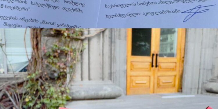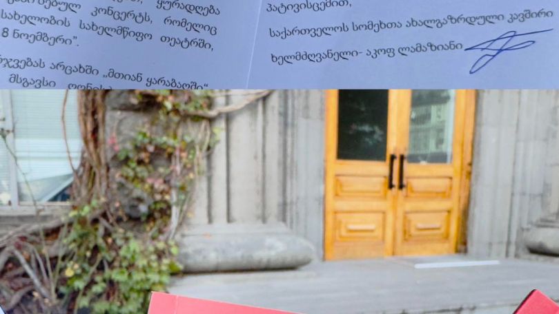 «Դիմում ենք Վրաստանի Մշակույթի Նախարարությանը, իր ուշադրության տակ առնի այն փաստը, որ Նոյեմբերի 6-ին Ադրբեջանի դեսպանությունը կազմակերպում է համերգ խորագրով «հաղթանակի օրվա 5-րդ տարելից-Նոյեմբերի 8» ։ Ադրբեջանը այդ օրը նշում է որպես 2020 թվականի 44-օրյա պատերազմի հաղթանակը Արցախում՝ (Լեռնային Ղարաբաղում)։ Միջոցառումը անցկացվելու է Թբիլիսիի Շոթա Ռուսթավելու անվան պետական ակադեմիական թատրոնի մեծ -ավելի քան 700 հոգանոց դահլիճում։ Շենքում, որը հիմնադրել է Եսաի Պիտոյեվը, իսկ կառուցմանը աջակցել է մեցենատ Ալեքսանդր Մանթաշեվը։