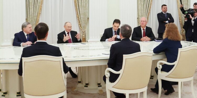 ՌԴ նախագահ Վլադիմիր Պուտինը ռուս-ուկրաինական հակամարտության դադարեցման շուրջ Կրեմլում հանդիպում է անցկացրել ԱՄՆ նախագահ Դոնալդ Թրամփի հատուկ բանագնաց Սթիվ Ուիթքոֆի և նախագահի խորհրդական ու փեսա Ջարեդ Քուշների հետ: Հանդիպումը տևել է շուրջ հինգ ժամ, սակայն կողմերին չի հաջողվել հասնել փոխհամաձայնության։ Հայտնում է Armenpress-ը: