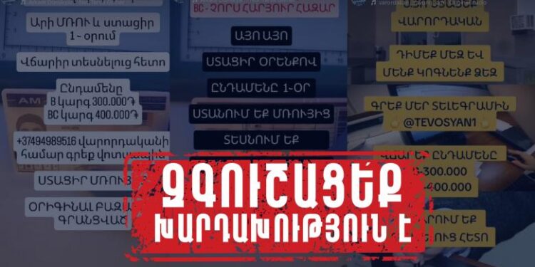 «Տեղեկացնում ենք, որ նման հրապարակումները խարդախություն են և չեն համապատասխանում իրականությանը։ Կան նախաձեռնված քրեական վարույթներ։ Հարգելի՛ քաղաքացիներ, եղե՛ք զգոն և մի՛ տրվեք խաբեություններին։ Վարորդական վկայական կարելի է ստանալ բացառապես օրենքով սահմանված ընթացակարգով»,-հայտնում են ՆԳՆ ոստիկանությունից։
