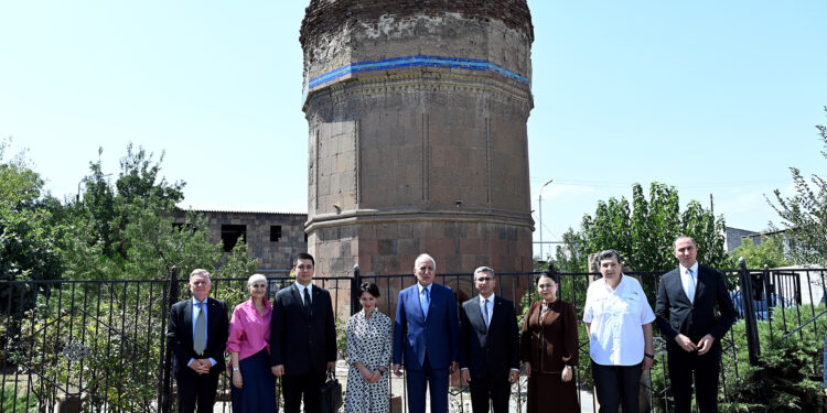 Президент Армении Ваагн Хачатурян в сопровождении министра образования, науки, культуры и спорта Армении Жанны Андреасян, чрезвычайного и полномочного посла Туркменистана в Армении Мухамметгельды Аязова посетил туркменский мавзолей, расположенный в населенном пункте Аргаванд укрупненной общины Паракар.